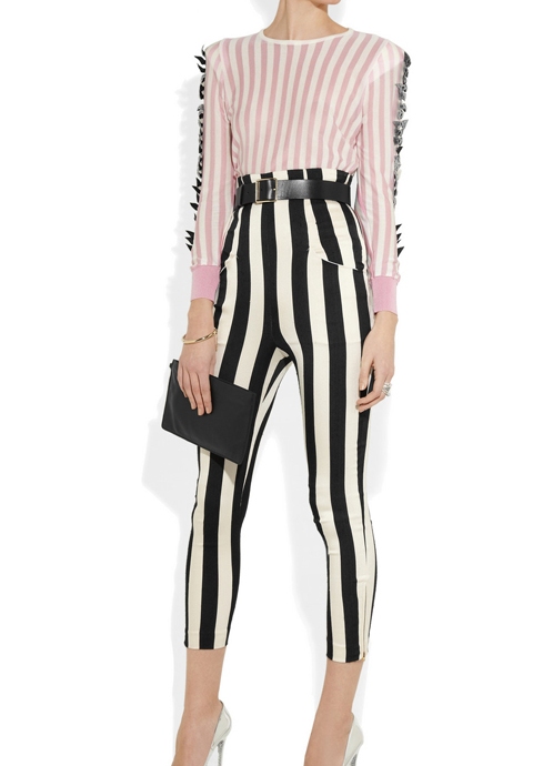 Ang pantalong pantalon ay magkasya sa mga batang babae na may halos anumang hugis, ang pangunahing bagay ay upang piliin ang tamang uri at direksyon ng mga guhitan. Ang isang bagay na may pahalang na mga guhit ay pinakamainam para sa mga fashionista na may isang kabataan na figure, dahil nakikita nito ang mga kinakailangang volume. Ang mga batang babae na may mga bibig na tubig ay dapat pumili ng kanilang vertical na strip, na magbabawas sa mga hips at makita silang mas mataas. Ang pangunahing bagay ay isang pakiramdam ng proporsyon, sa katunayan, sa iyong sangkapan ay dapat lamang isang bagay na may isang naka-print na guhit, kung hindi man ay makikita mo ang katawa-tawa at walang lasa.